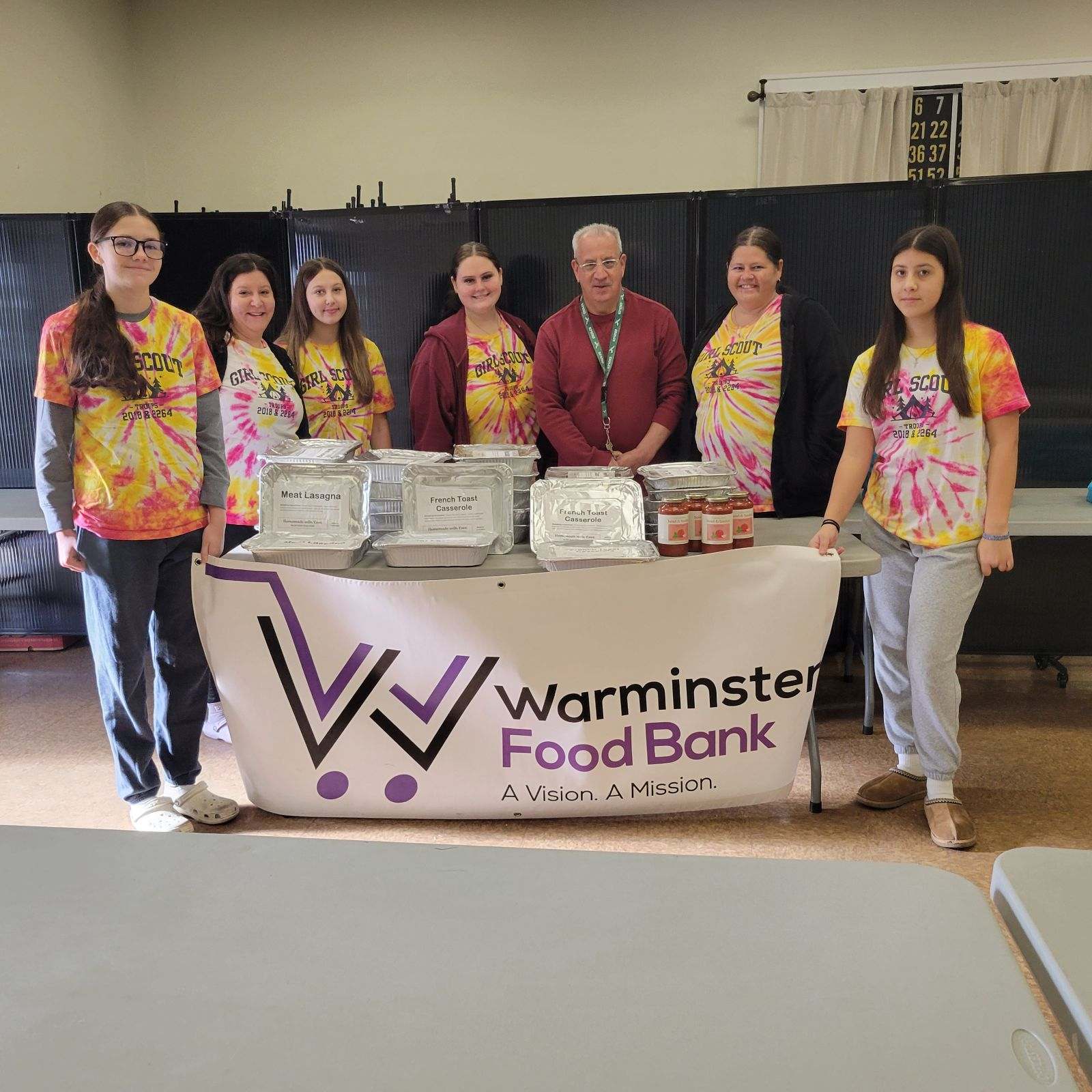 We thank Girl Scout Troop 2018 for making 30 frozen homemade Lasagna family dinners and donations of sauce all totaling over 200bs